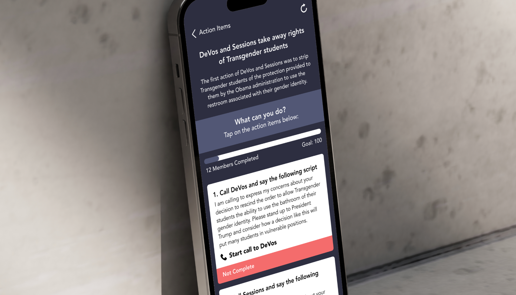 Stand Up For Change empowered users to complete Call-To-Actions (like calling senators, tweeting representatives, signing petitions), organizing and attending events, and discussing pressing issues with others. Stand Up For Change is no longer available in the App Store.